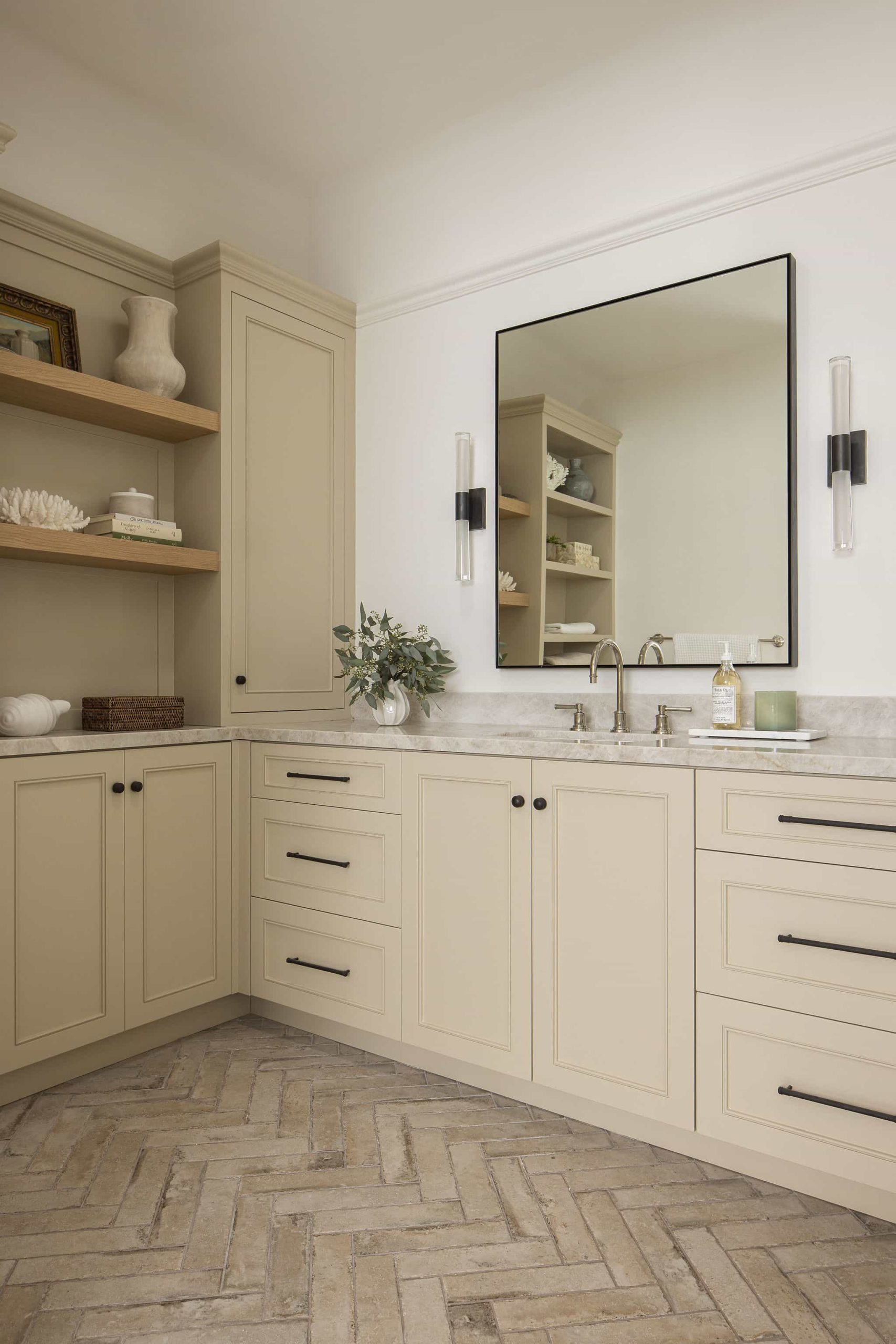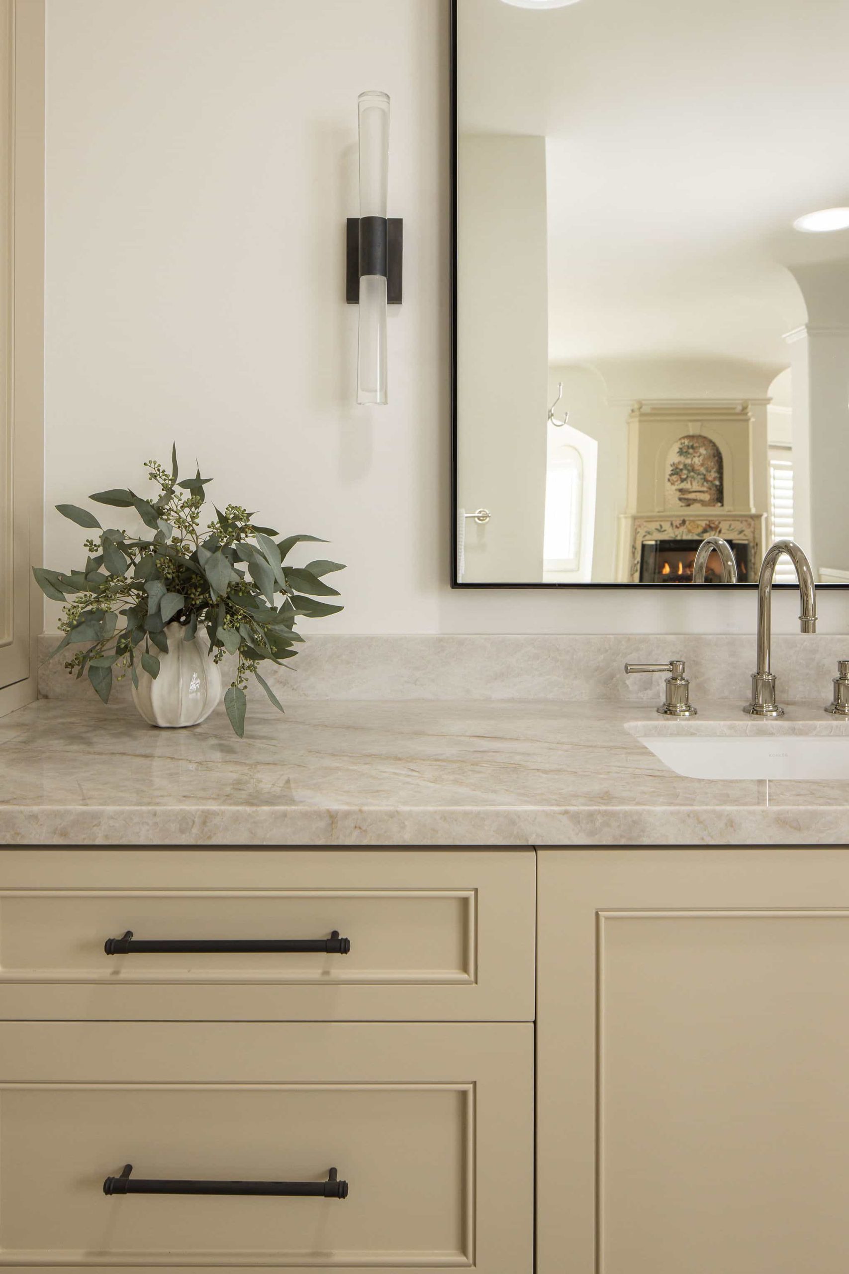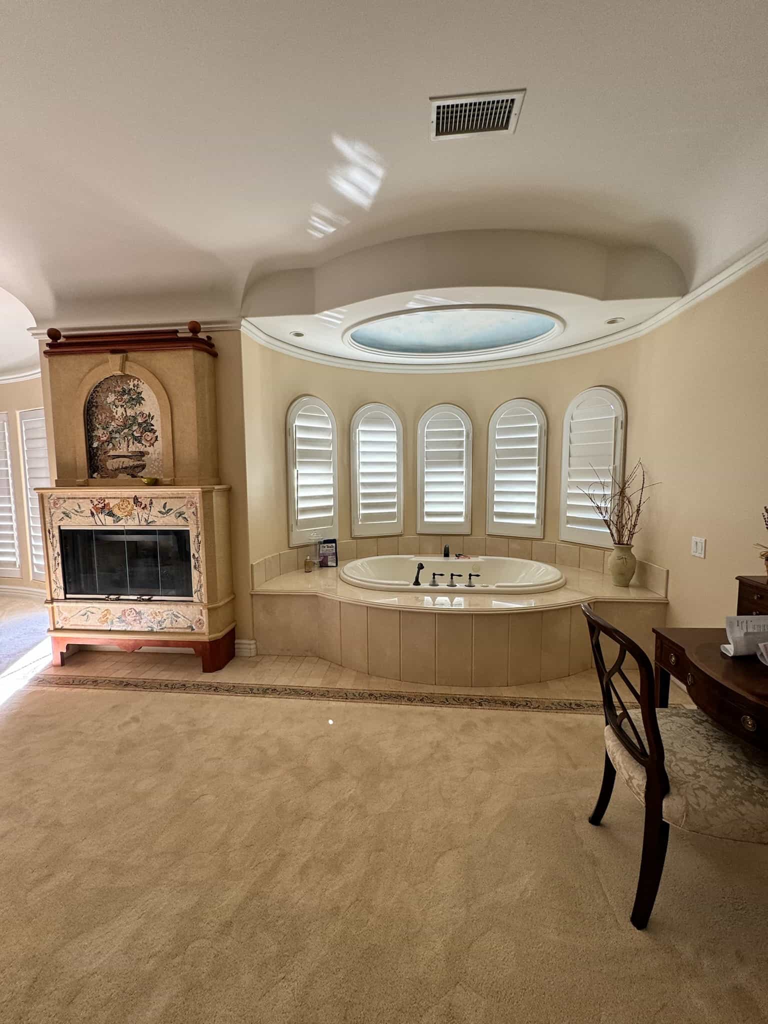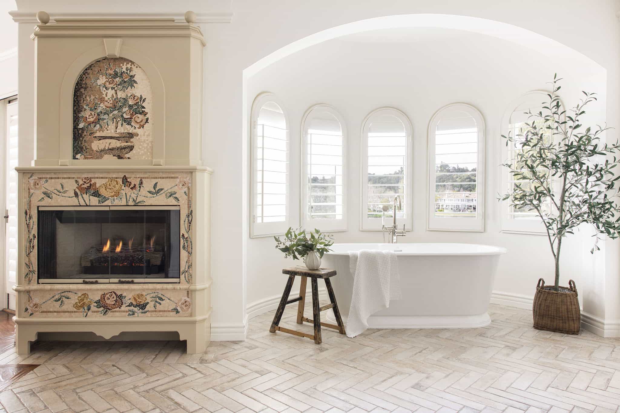 This Westlake Village primary bath was completely transformed, shedding its overwrought Tuscan aesthetic for a serene, Modern Organic design. Our goal was to maximize space and function while infusing the room with refined luxury. This was achieved with custom cabinetry that dramatically increased storage and counter space, creating an elegantly functional vanity area. The room now features a spacious, luxurious shower and a freestanding tub that serves as a stunning focal point. We carefully updated the original fireplace with a subtle refresh, allowing its unique character to shine as the room’s elegant centerpiece. The result is a luminous, spa-like retreat that feels both expansive and intimately comforting.