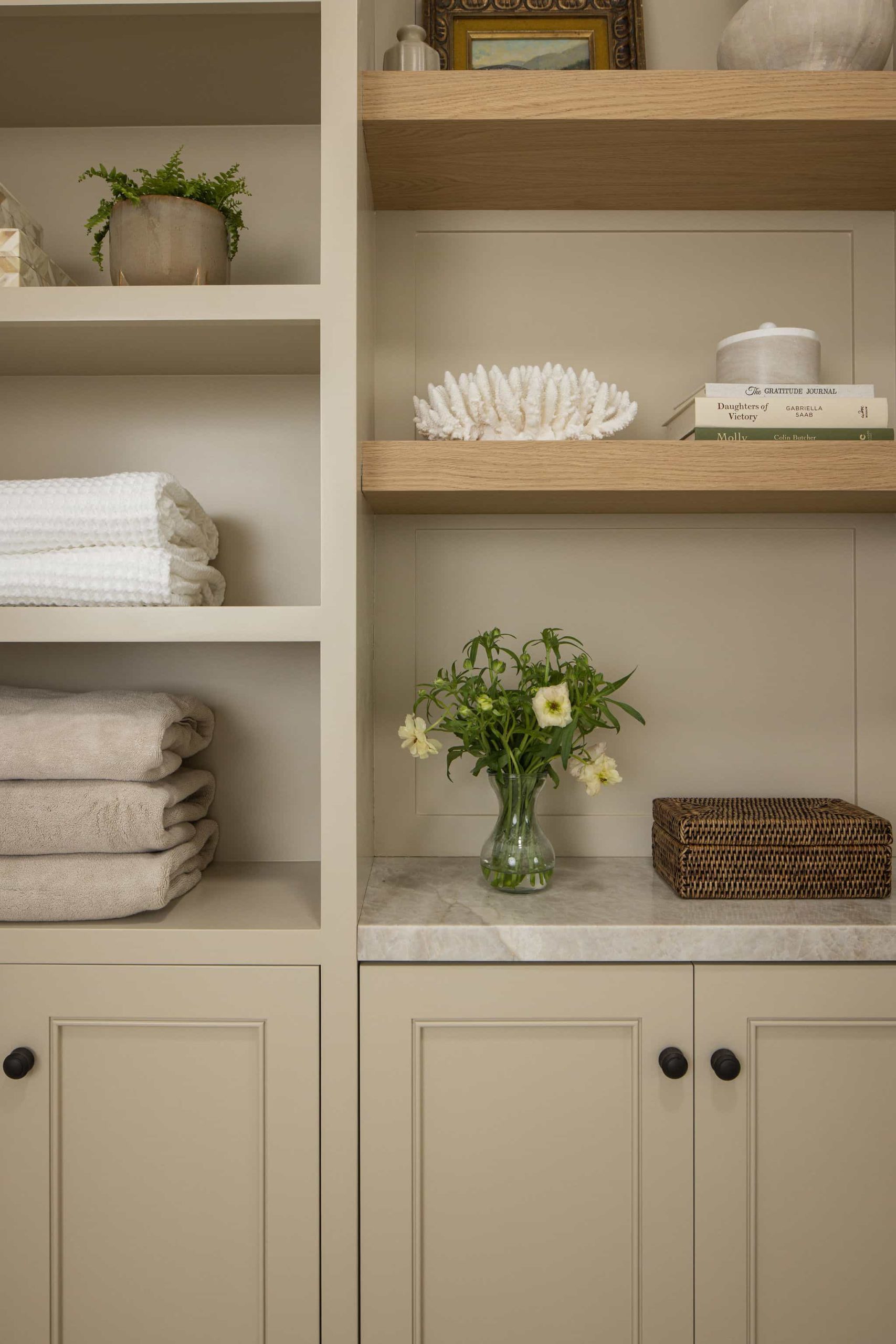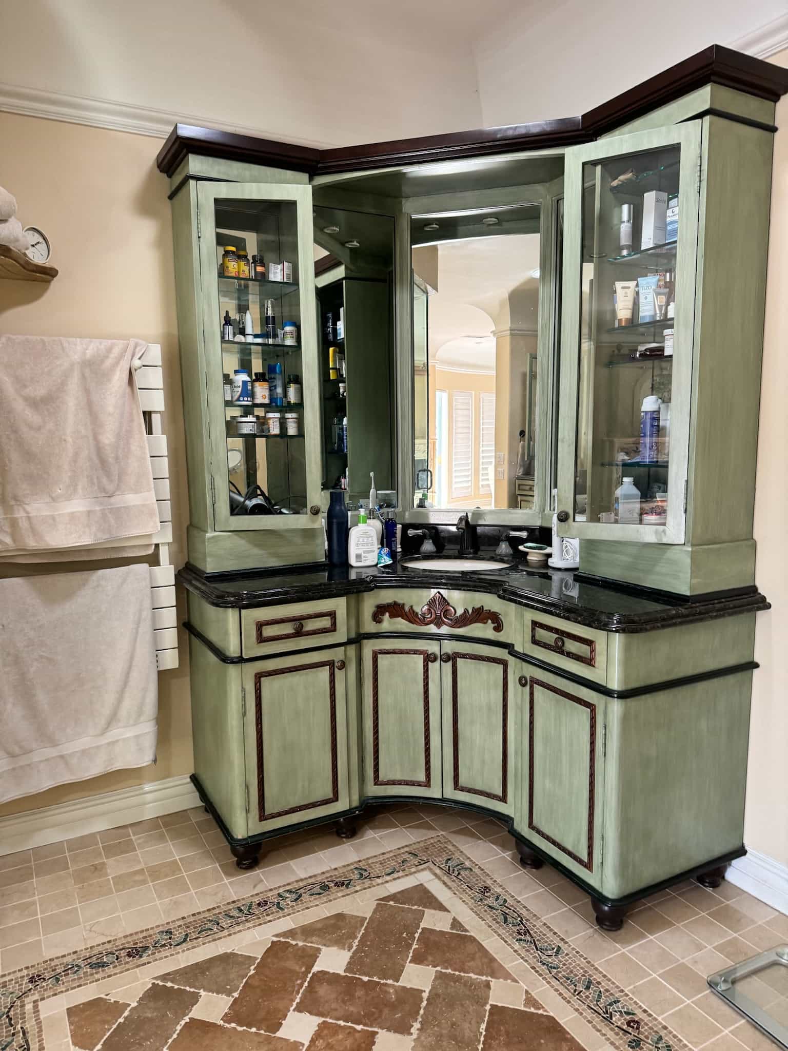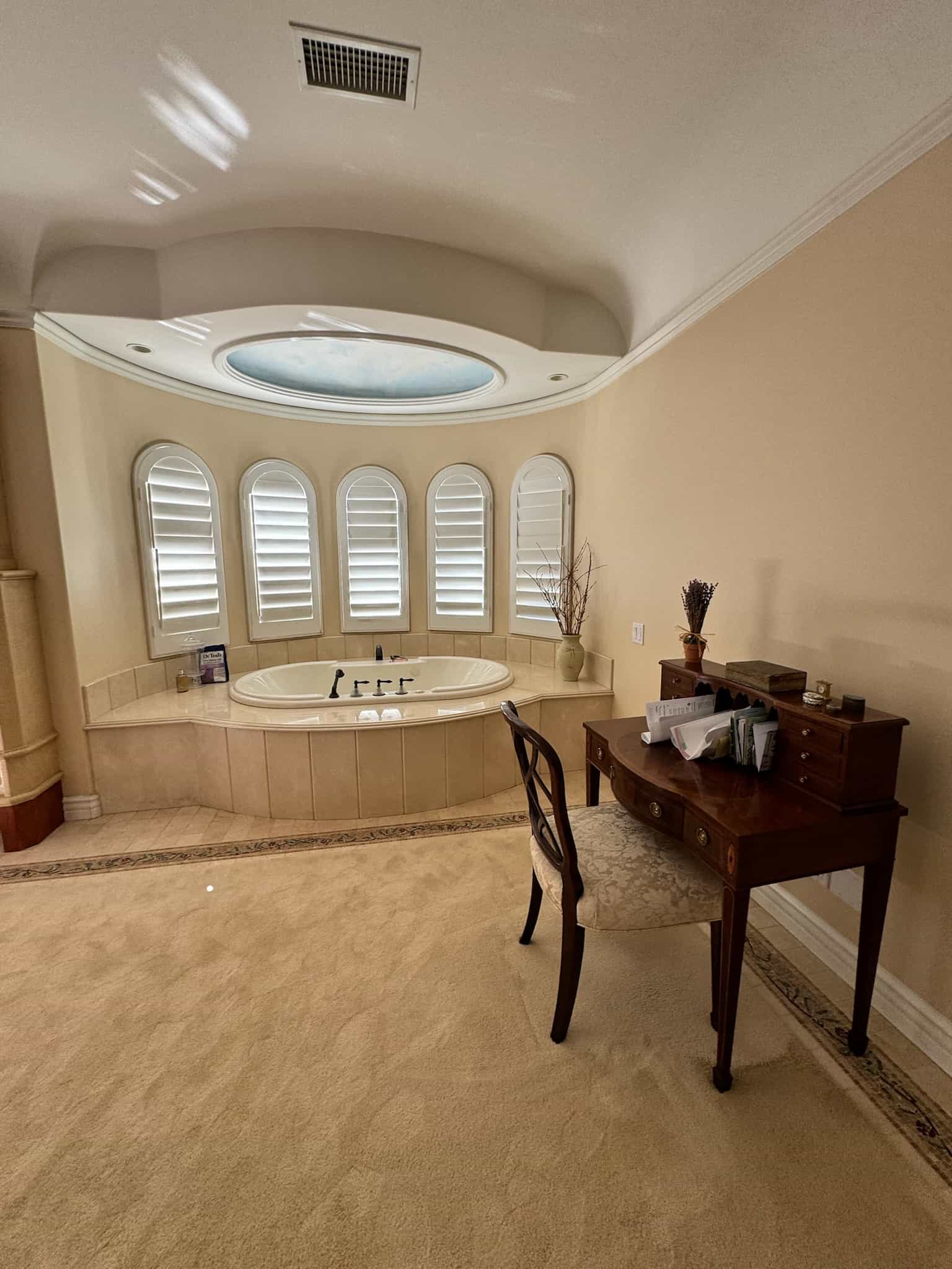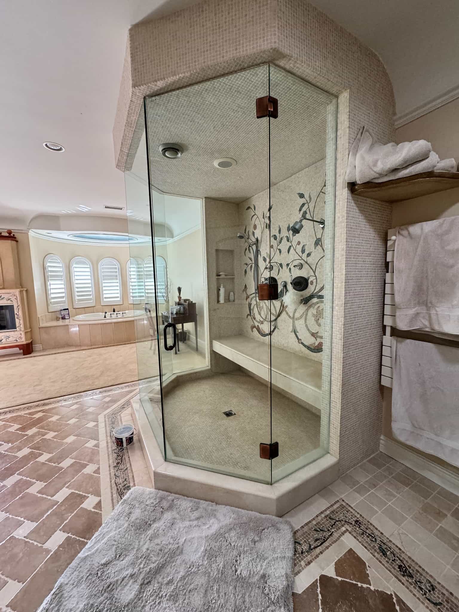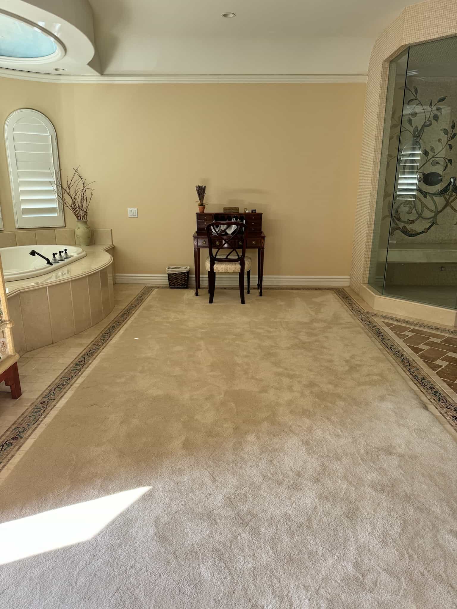 This Westlake Village primary bath was completely transformed, shedding its overwrought Tuscan aesthetic for a serene, Modern Organic design. Our goal was to maximize space and function while infusing the room with refined luxury. This was achieved with custom cabinetry that dramatically increased storage and counter space, creating an elegantly functional vanity area. The room now features a spacious, luxurious shower and a freestanding tub that serves as a stunning focal point. We carefully updated the original fireplace with a subtle refresh, allowing its unique character to shine as the room’s elegant centerpiece. The result is a luminous, spa-like retreat that feels both expansive and intimately comforting.