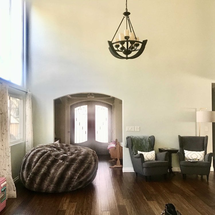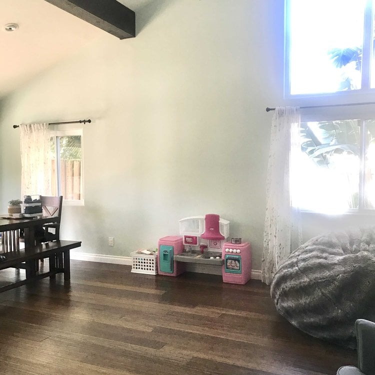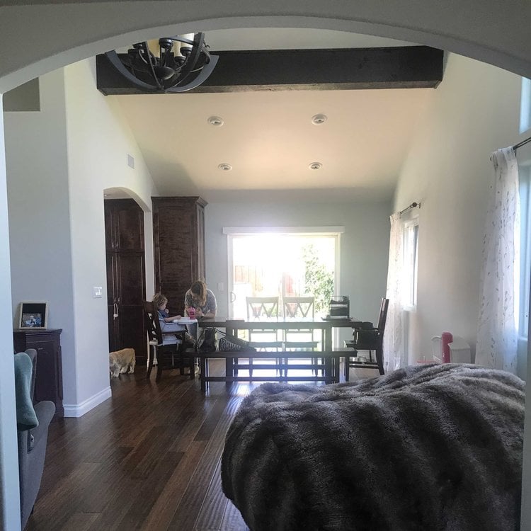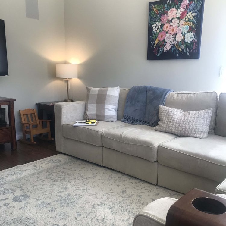 This young family wanted their first home to look bright and beautiful, with lots of color. It also needed to function well for their active lifestyle. The biggest challenge was creating a space plan that allowed the great room to function as both a dining room and a living room. We chose foundational furniture pieces in neutrals and classic colors, durable performance fabrics, and added pops of color in smaller furnishings so they could easily change as the family grows.